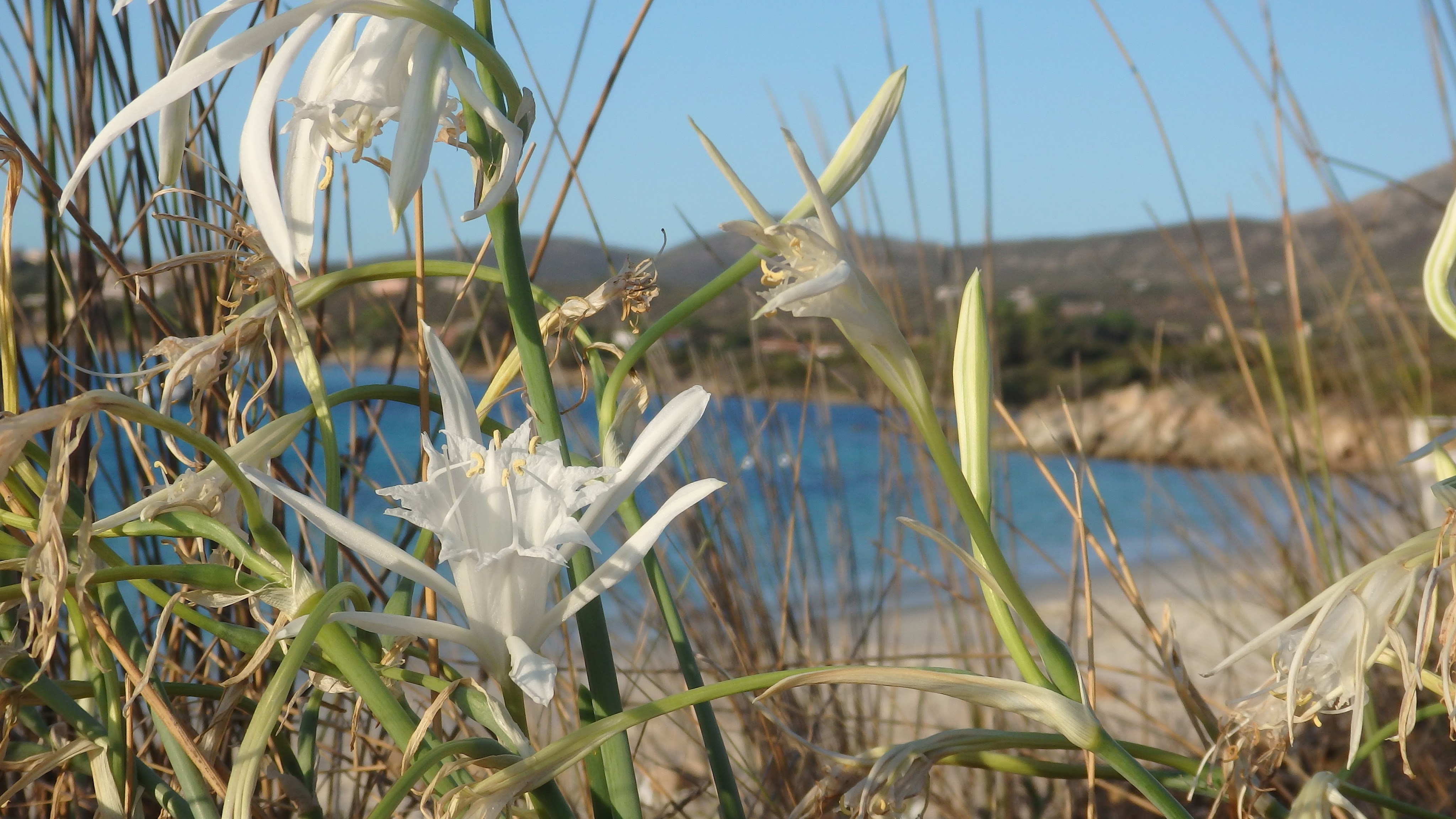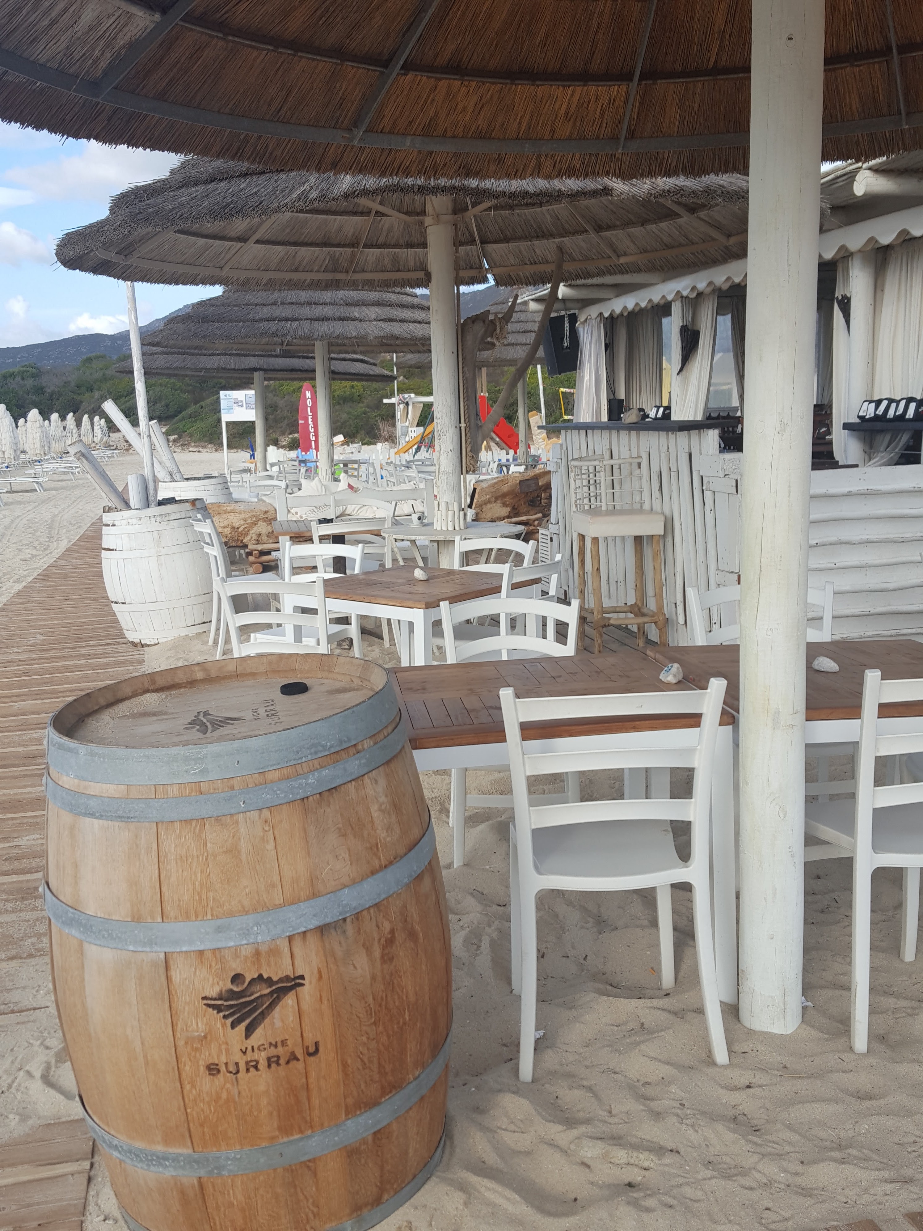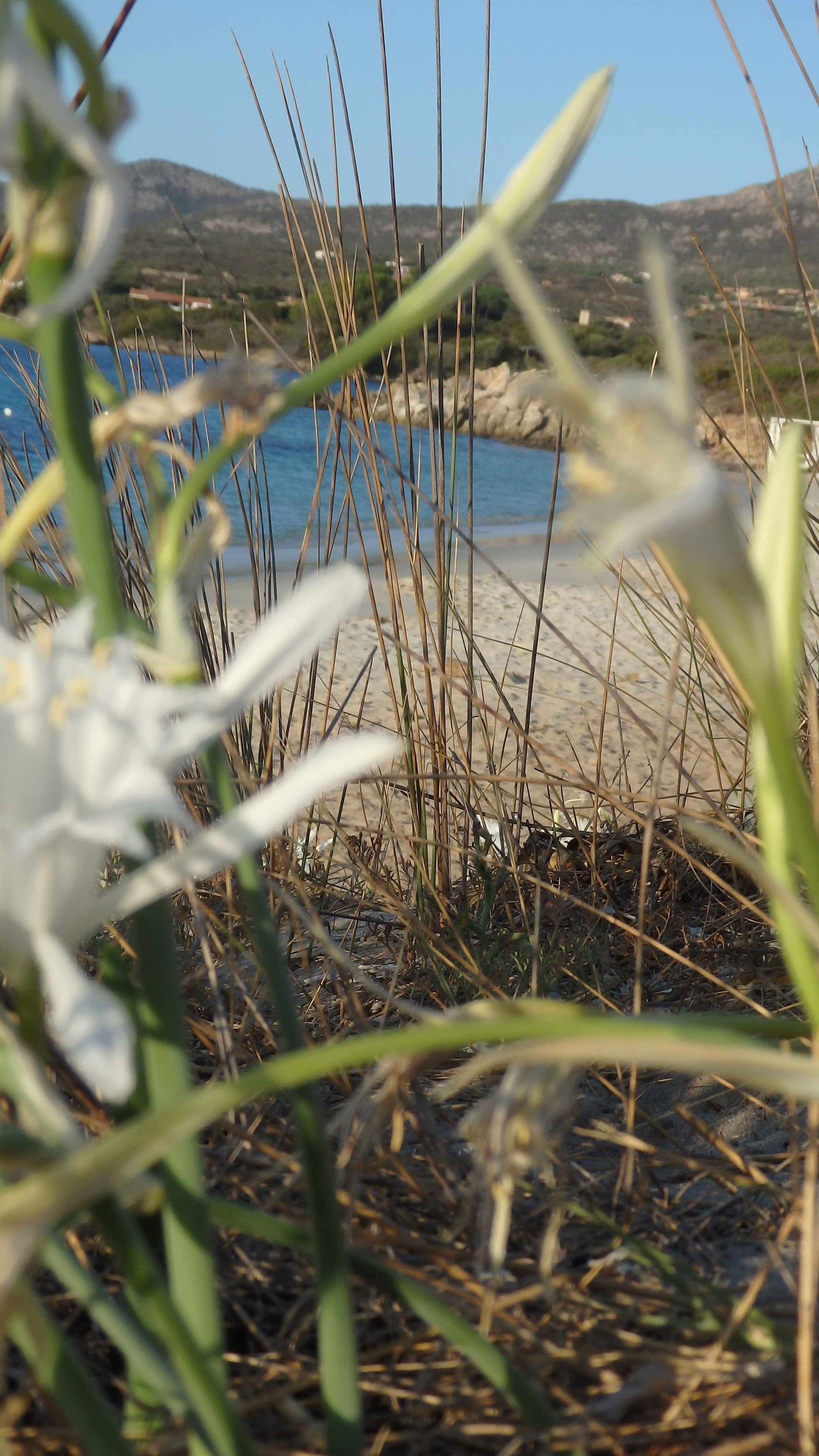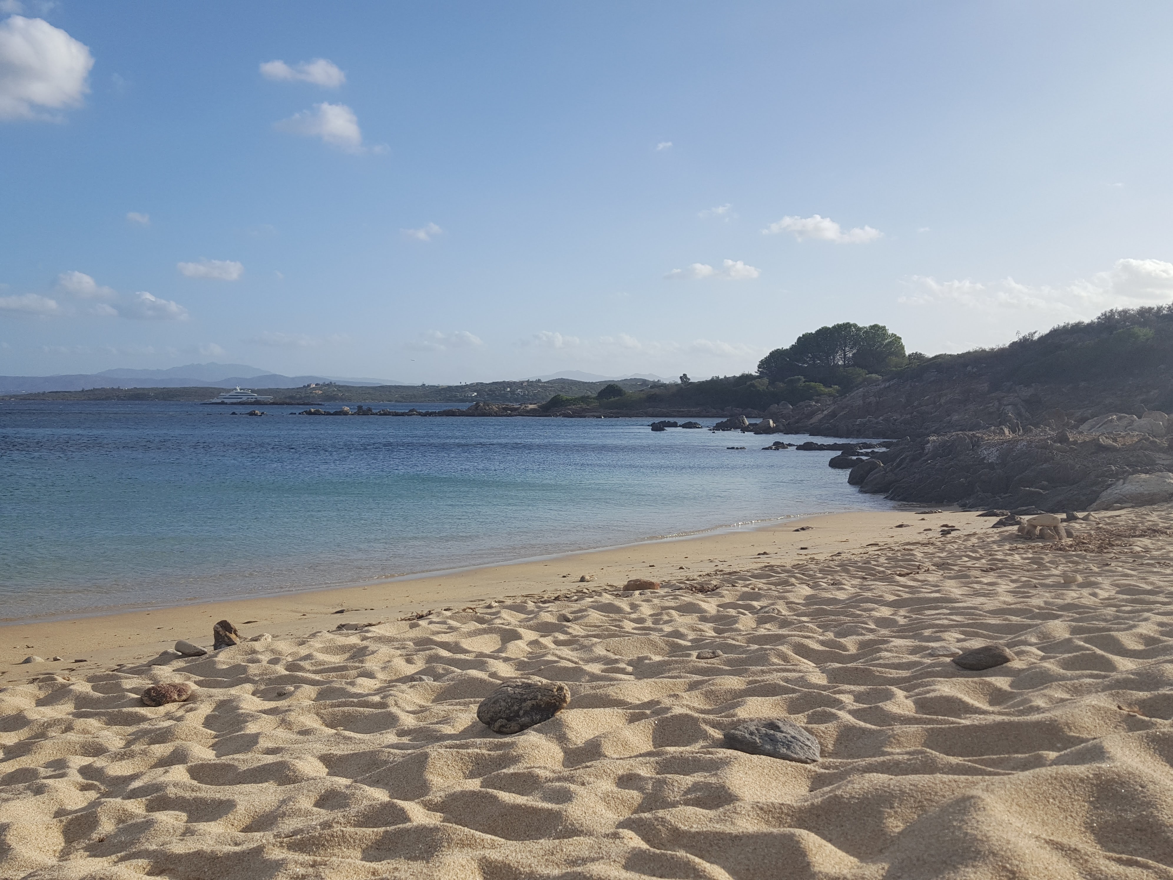 Best Spot den Tag zu starten: White Beach / Spiaggia Bianca, Cappuccino laktosefrei, Croissant gefüllt mit Aprikosenmarmelade, Sonne & Meer, Füsse im Sand …